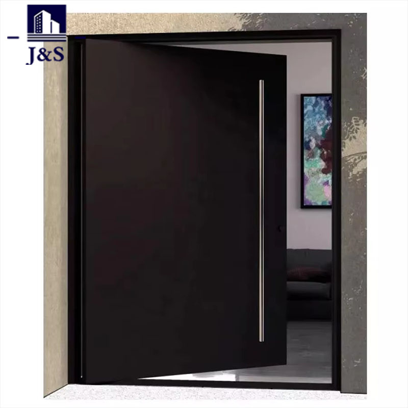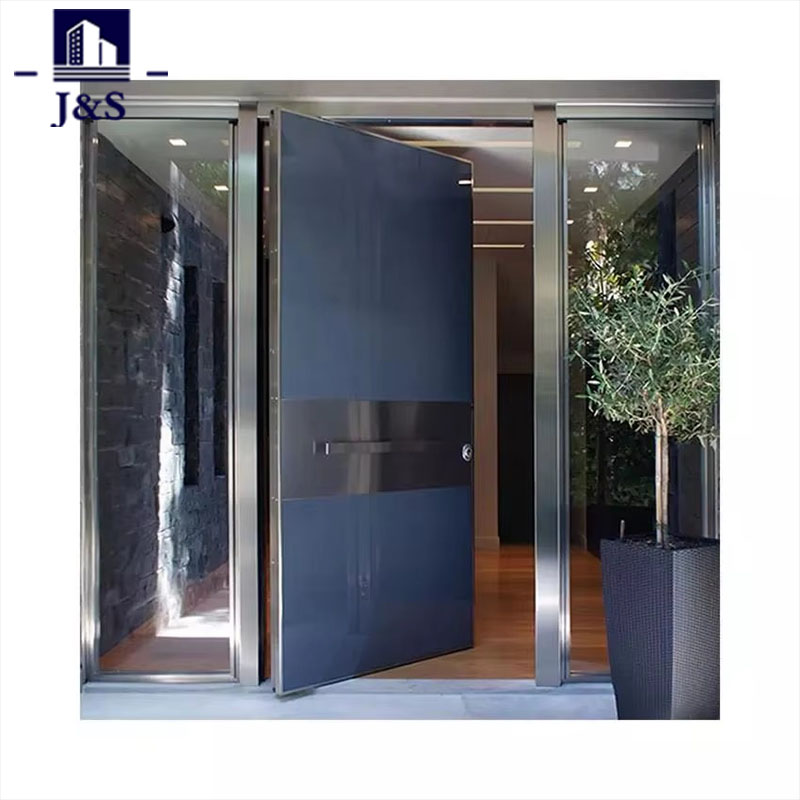 Se trata de una moderna puerta de seguridad metálica de aluminio diseñada para entradas residenciales, que combina una estética elegante con una seguridad sólida. Con un acabado en un azul marino mate intenso, presenta una estructura de panel minimalista con cuatro tiras horizontales de metal pulido que agregan contraste visual y refuerzo estructural. Flanqueada por dos luces laterales altas y estrechas de vidrio esmerilado, la puerta equilibra la transmisión de luz natural con privacidad, mientras que la manija vertical extralarga de acero inoxidable brinda un agarre premium y un atractivo contemporáneo. Construido con una aleación de aluminio de alta resistencia, ofrece una excelente resistencia a la corrosión y durabilidad, lo que lo hace ideal para uso en exteriores. Las líneas limpias y el estilo industrial-chic realzan el atractivo exterior de la casa, mientras que su sólida construcción garantiza una protección confiable contra la entrada forzada, alineándose con los estándares de seguridad modernos para hogares familiares.