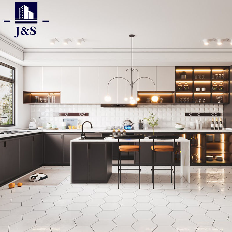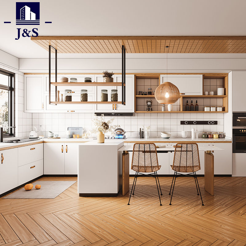 El armario de cocina de pintura de dos paquetes hecho a medida con hermosos diseños de cocina de J&S Supply es un tipo de puerta que les gusta a muchos clientes, es simple y parece más clásico, pero también moderno, este tipo de puerta en cualquier edad los usuarios son más populares, este es un costo muy alto. tipo de puerta efectiva.