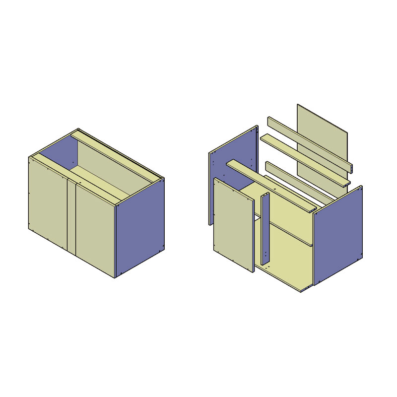 J&S suministra una base de esquina ciega de cocina modular de paquete plano. Los gabinetes con base de esquina ciega son gabinetes que se instalan en la esquina donde se unen dos tramos de gabinete, y una parte del gabinete queda oculta por el adyacente. Las partes ocultas se utilizan como almacenamiento sin renunciar a espacio en los rincones.