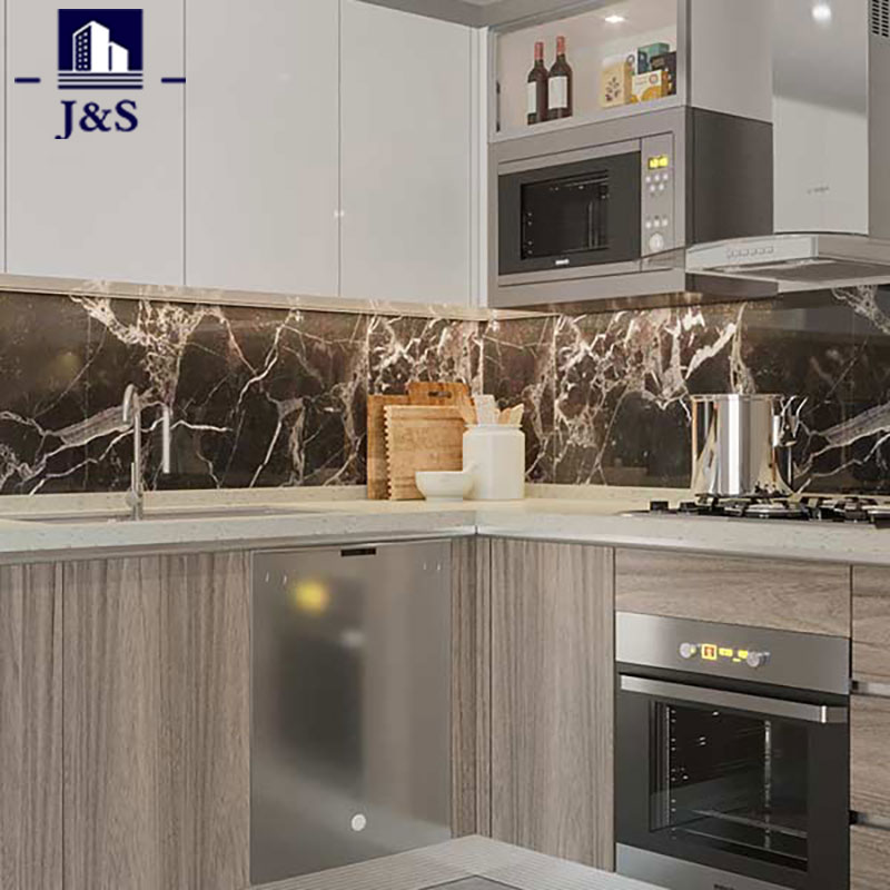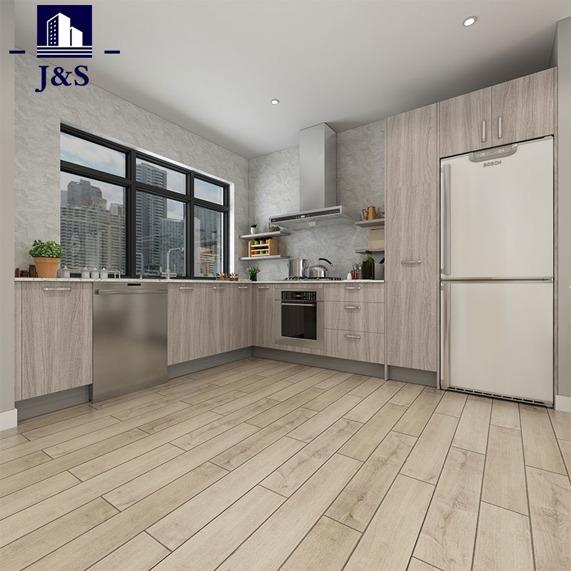 El color de madera original lo devuelve a la naturaleza y le hace sentirse relajado. La misma puerta de melamina crea una gran cantidad de diseño elegante y moderno. Combina un color sólido con el color de la veta de la madera y un mango negro a juego para reflejar la sensación de lujo. Contamos con diseñadores ricos y experimentados para crear su cálida cocina específicamente para usted. Habitación baño