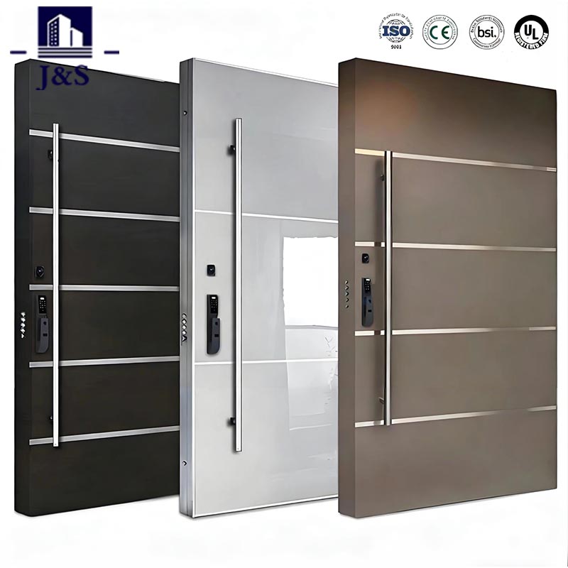 Mejore su entrada con la puerta de seguridad de acero de J&S, ofrecida a un precio competitivo por un fabricante chino confiable. Combinando una seguridad robusta con una estética minimalista moderna, presenta elegantes tiras metálicas horizontales y un marco de acero inoxidable duradero. Diseñada para brindar protección antirrobo y resistencia a la intemperie, esta puerta de seguridad de acero es perfecta para entradas residenciales y comerciales. Su sofisticado acabado mate complementa los exteriores contemporáneos, mientras que la superficie suave y fácil de limpiar garantiza un brillo duradero. Al cumplir con los más altos estándares de seguridad, está disponible en tamaños personalizados para adaptarse perfectamente a su puerta, lo que lo convierte en una opción ideal para los compradores que buscan un proveedor o una fuente de fábrica confiable.