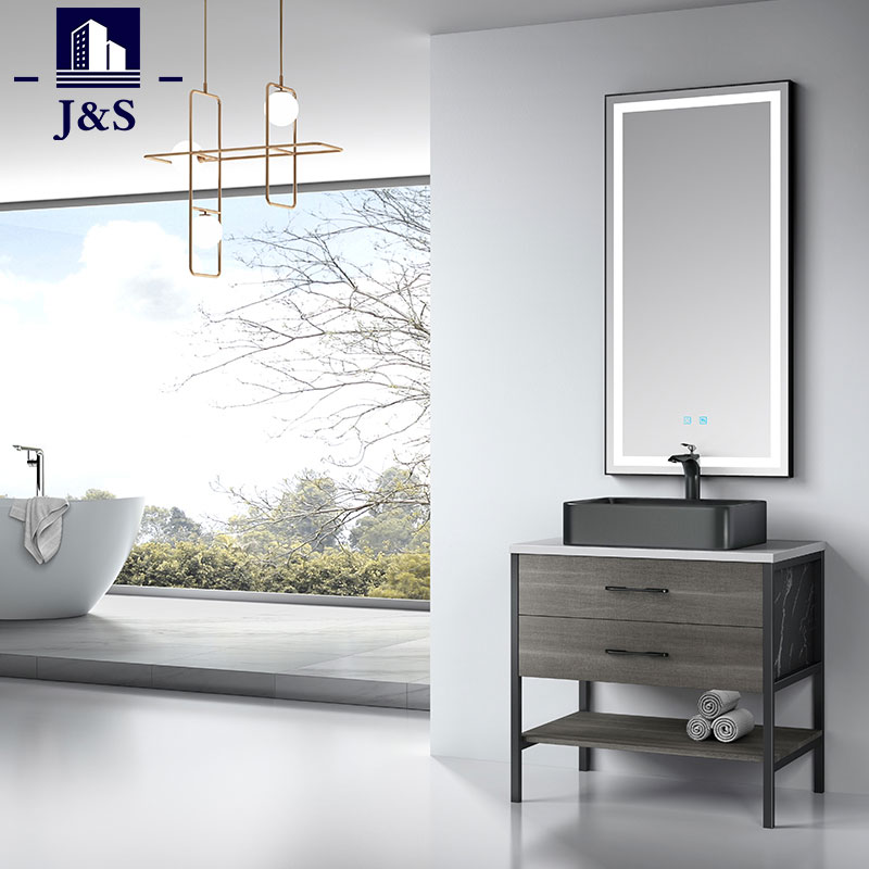 Suministramos un tocador de baño delgado con baño privado. El color gris oscuro es moderno y moderno, y generalmente se usa en el diseño de gabinetes de baño modernos.